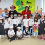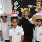 وقد عملت معلّمة مادة الفنون مع الطلبة وقدّمت لهم مواد لرسم وصُنع القبّعات الخاصّة بهم خلال حصص مادة الفنون. كما تحمّس جميع المعلّمين لهذا النشاط المميّز وقاموا بارتداء قبّعاتهم الخاصة لإكمال الصورة الجميلة لهذا اليوم. كما نشكر أولياء الأمور الذين أمضوا وقتًا في مساعدة أبنائهم لإعداد القبّعات الجميلة.