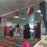 قدّم الطلبة من رياض الأطفال حتى الصف السادس ابتدائي لوحات استعراضية مختلفة بكل حب وحماس على أنغام الأغاني الوطنية التقليدية على مسرح المدرسة. كانوا يملأهم الفخر وهم يعبّرون عن حبهم لدولة قطر من خلال العروض الجميلة أمام أولياء الأمور. قام ممثّلو الصحافة من طلبة المدرسة بإجراء العديد من المقابلات مع الضيوف ، حيث طرحوا عليهم أسئلة حول العادات والتقاليد خلال اليوم الوطني في قطر.