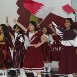 كما قدم طلابنا من صفوف الروضة إلى الصف السابع مجموعة من اللوحات المختلفة من العروض الراقصة على أنغام الشيلات القطرية والألحان الجميلة للأغاني الوطنية على مسرح المدرسة بكل حب وحماس. هذا إلى جانب رقصة العارضة وإلقاء رائع لأبيات شعر تتغنى بالوطن مع اناشيد وطنية قطرية زيادة على ذلك استمتعت الفتيات برسم الحنة.
