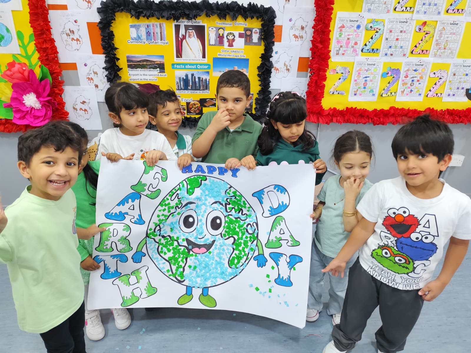 Kindergarten students promoted healthy eating in conjunction with Arabic language classes, enhancing students' knowledge of words that contain the letter "b": watermelon, bread, egg, and cheese.