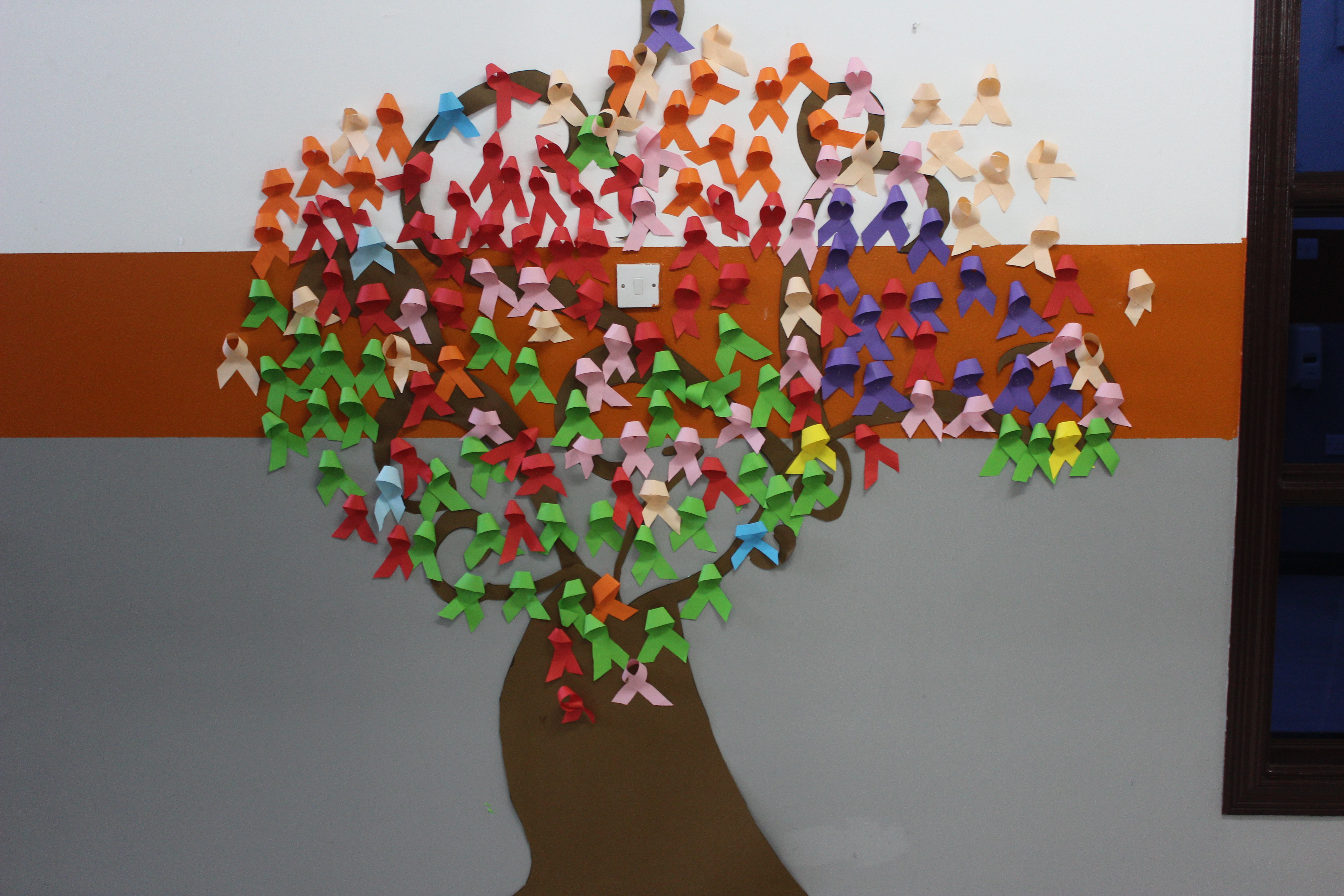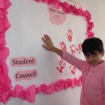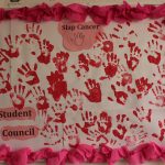 Later, during the breaks, student council held an activity called “Slap Cancer” where students applied pink paint on their palms and placed it against a white board. The board was later hung out in the playground.