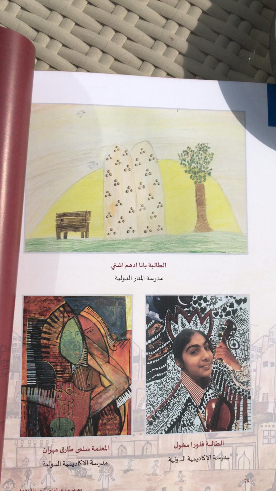 The head of the visual art Unit of the Ministry of Education Suad Al Salem selected Ms. Hager’s drawing to be displayed at the exhibition and our little artist Bana Echty’s drawing was selected to be displayed in the exhibition book.